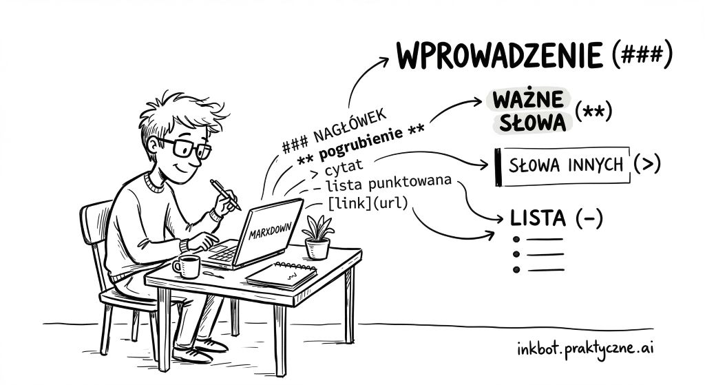 Markdown to sposób na formatowanie tekstu za pomocą zwykłych znaków. Żadnych przycisków w pasku narzędzi, żadnego menu "Format". Zamiast tego kilka symboli, które po prostu wpisujesz z klawiatury.
